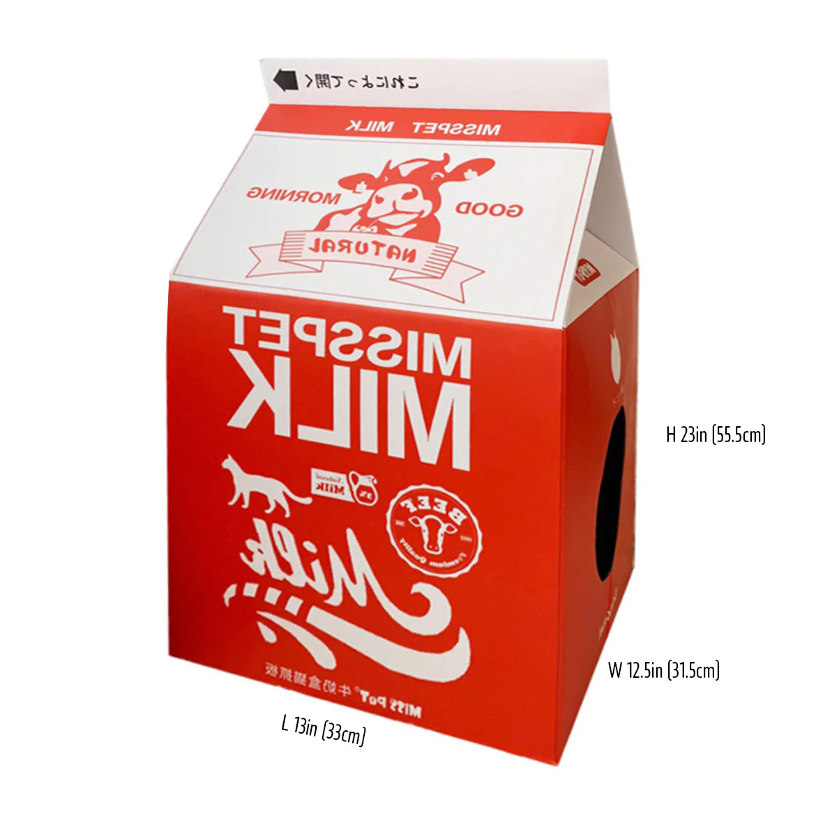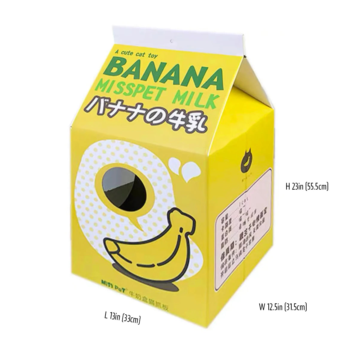 Cat scratcher is a must-have in every cat household. Scratching keep their claws sharp and get their exercise in. A cat scratcher is also the best way to keep your carpets and furniture from getting damaged. Level up your cat's scratching game with a cute milk box house scratcher! Each milk box comes with the box itself and high-density cardboard scratch pad insert. This will quickly become your cat's dream house to play, hide, lounge and sleep! Pick from our various designs and find the one that best matches your home design aesthetic! Dimensions: 13 * 12.5 * 23 inches