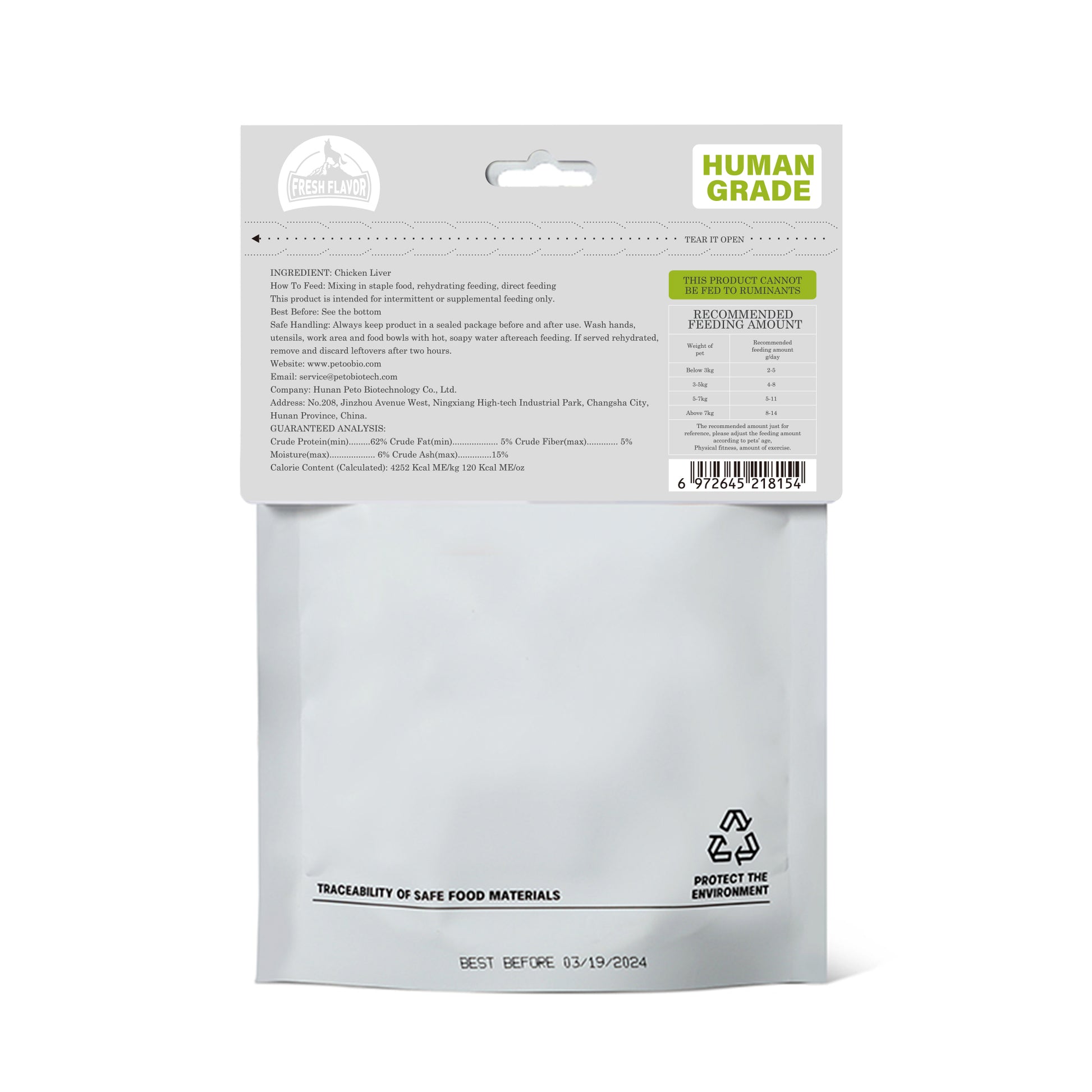 Freeze-dried chicken liver for pets is a nutritious and convenient treat made from real chicken liver that has undergone a freeze-drying process. During freeze-drying, the moisture is removed from the liver while preserving its natural flavors, nutrients, and texture. The result is a lightweight, shelf-stable product that can be stored for extended periods without refrigeration.