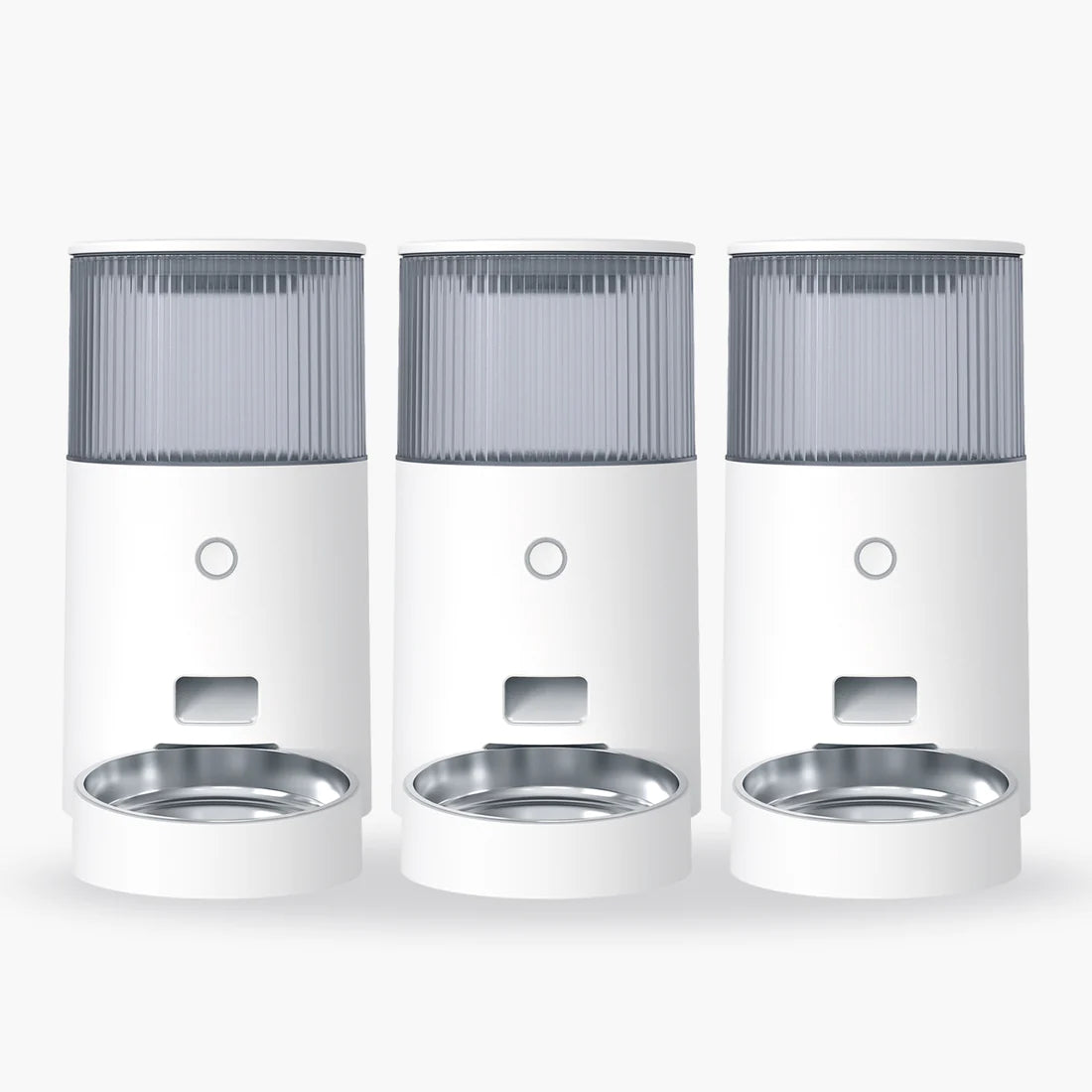 Wi-Fi enabled, 2.5L/10cup automatic cat feeder with stainless steel bowl.