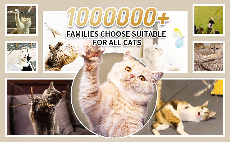 Uah Pet - Retractable Cat Wand Toy with 4 Piece Teasers